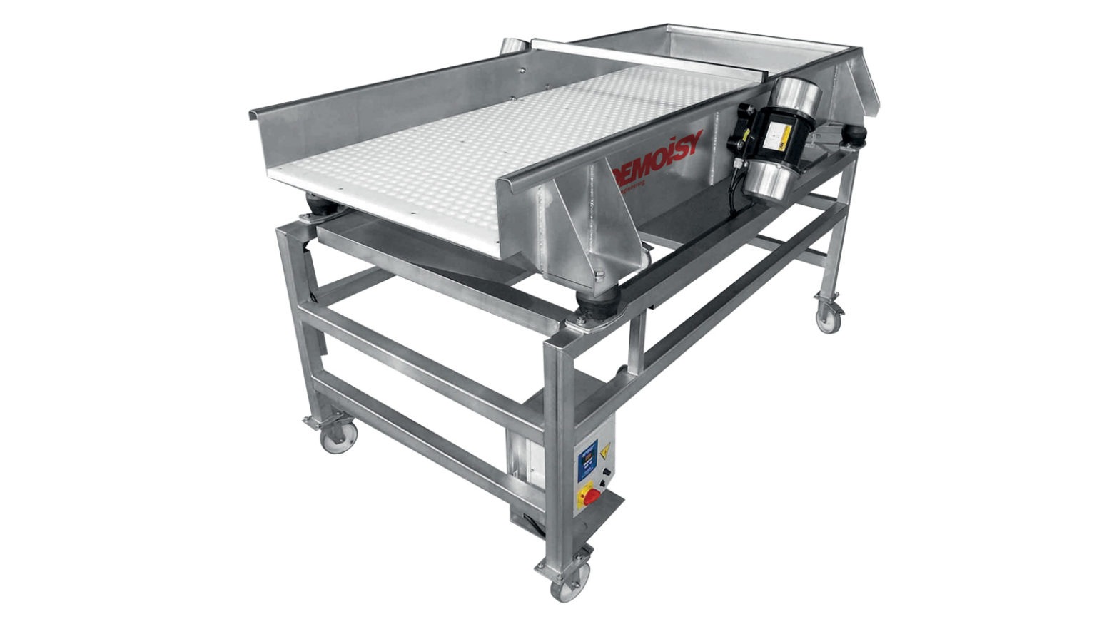 Le séparateur vibrant semi-automatique Demoisy assure un nettoyage irréprochable de la vendange sans perte de baies. La vendange égrappée est déversée sur une grille égoutteuse à barreaux. Après égouttage, elle transite sur une plaque perforée. Les baies saines passent dans les perforations. Les résidus végétaux sont évacués en bout de table.